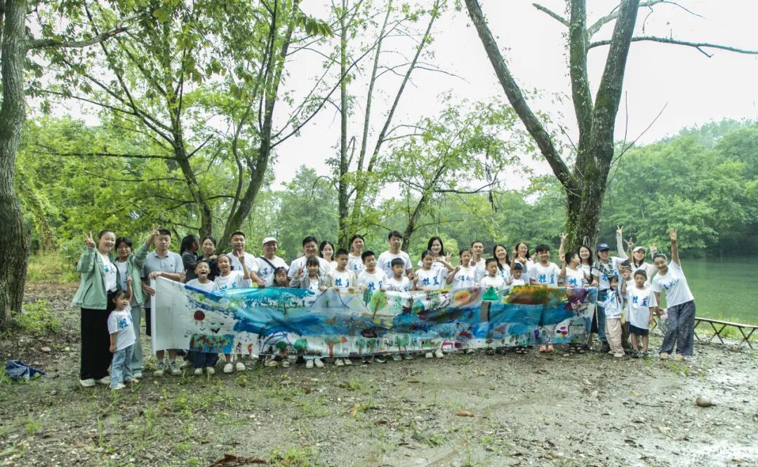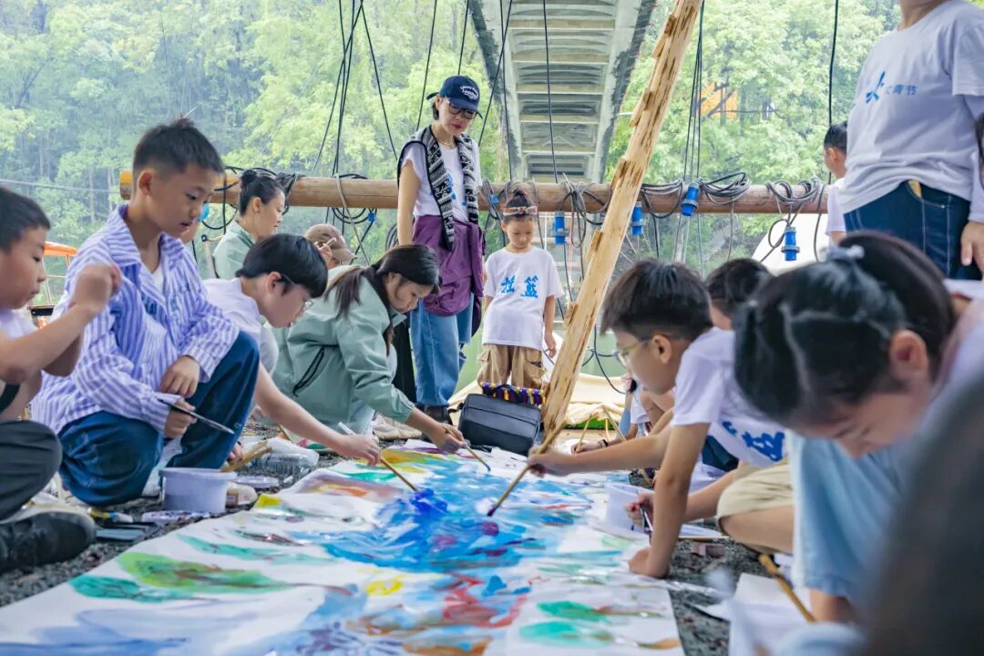 21日上午,潦河邊下起大雨,《搖籃》藝術課堂正常開講?!稉u籃》藝術課堂特邀教師寧靜把孩子們帶到河邊的橋洞下,教大家觀察河面的事物,用筆描繪看到的和想到的風景。經過一上午的努力,一張寫實和寫意風格交融的6.4米丙烯畫長卷《潦河》終于完成?!稉u籃》寶寶們冒雨展開長卷,開心地與紙上的潦河及身后的潦河合影。