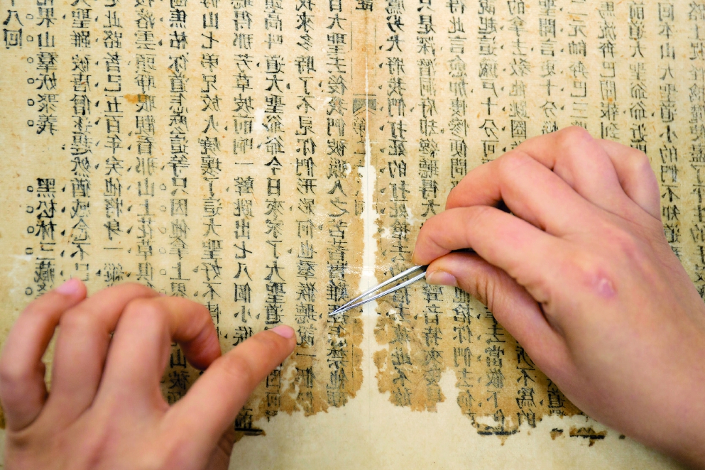 書中用大量筆墨描繪了星光熠熠的修復師群像。除了潘美娣、杜偉生,還有傳拓大師馬國慶,他能將西湖的晴、雨、霧、煙波之色,融于墨色的輕重、明暗、虛實之中;有對她影響至深的導師胡玉清,手把手教她如何在絮化如棉胎的《唐詩拾遺》上拼湊出指甲蓋大小的殘片,并灌輸“修合無人見,存心有天知”的職業信念;還有已故的趙嘉福先生等老一輩大師,他們將畢生絕學傾囊相授。這些事例,讓我們看到一項古老技藝是如何在師徒相授、口傳心授中得以薪火相傳。