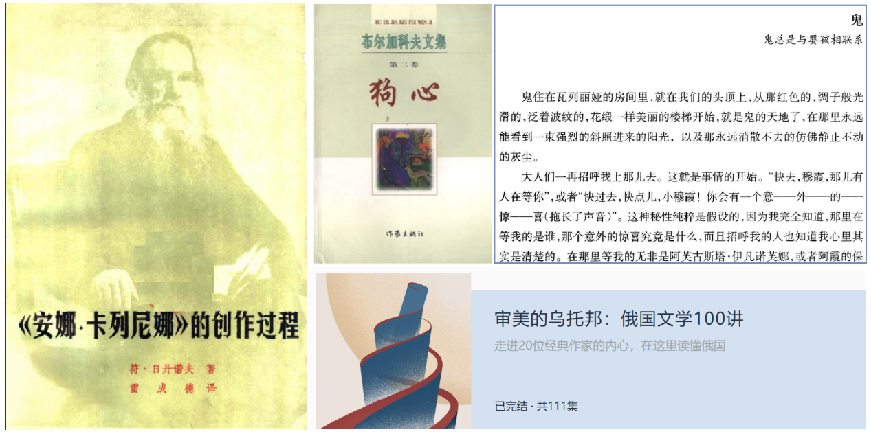 阿舍(作家,著有《托爾斯泰的胡子》《阿娜河畔》等):讀俄國和蘇聯文學,我常有一種吃不消的感覺,好比一個脾胃虛弱的人承受不住補品里的滋補,非要溫和少量地循序而進,方得養分之益。所以,相比其他國家,俄蘇作品雖讀得稍多,卻從來不敢對之妄言,因為即便是讀過的作品,至今仍只是從自己敏感、共情的那一個方面析出一小部分,如同從一片森林里撿出一枚樹葉,常有難以穿越的絕望感。不過,在明白憑一己之力難以深入這片森林之后,我也幸運地不斷遇到能夠帶我繼續向前的“好向導”,這大概就是書籍與人的緣分。比如,在重讀《安娜》后,我從朋友那里得到了《〈安娜·卡列尼娜〉的創作過程》這本書,從而領悟到這部作品在結構上的建筑美學。比如,讀完《靜靜的頓河》之后,正好劉文飛老師在“看理想”開了《俄羅斯文學一百講》的音頻課,聽完肖霍洛夫這一講,我得以看出《戰爭與和平》《靜靜的頓河》二者之間的傳承關系,又在后者當中擷取到超越前者的指引——樸素日常里的力量與深情。還有茨維塔耶娃的散文,她竟以《鬼》為題,確鑿可信地寫出了一位女性的精神成長之路,這對以“寫實”為己任和評判標準的當下散文可謂莫大挑釁。布爾加科夫在1925年寫出《狗心》,對比當下讓人眼花繚亂的科幻作品,《狗心》的精神指向依然超前。精神與情感世界的澎湃洶涌,是老派的俄蘇文學給予我的“關鍵所在”,我仰望并需要,又因為畏懼她的光芒不時躲開。