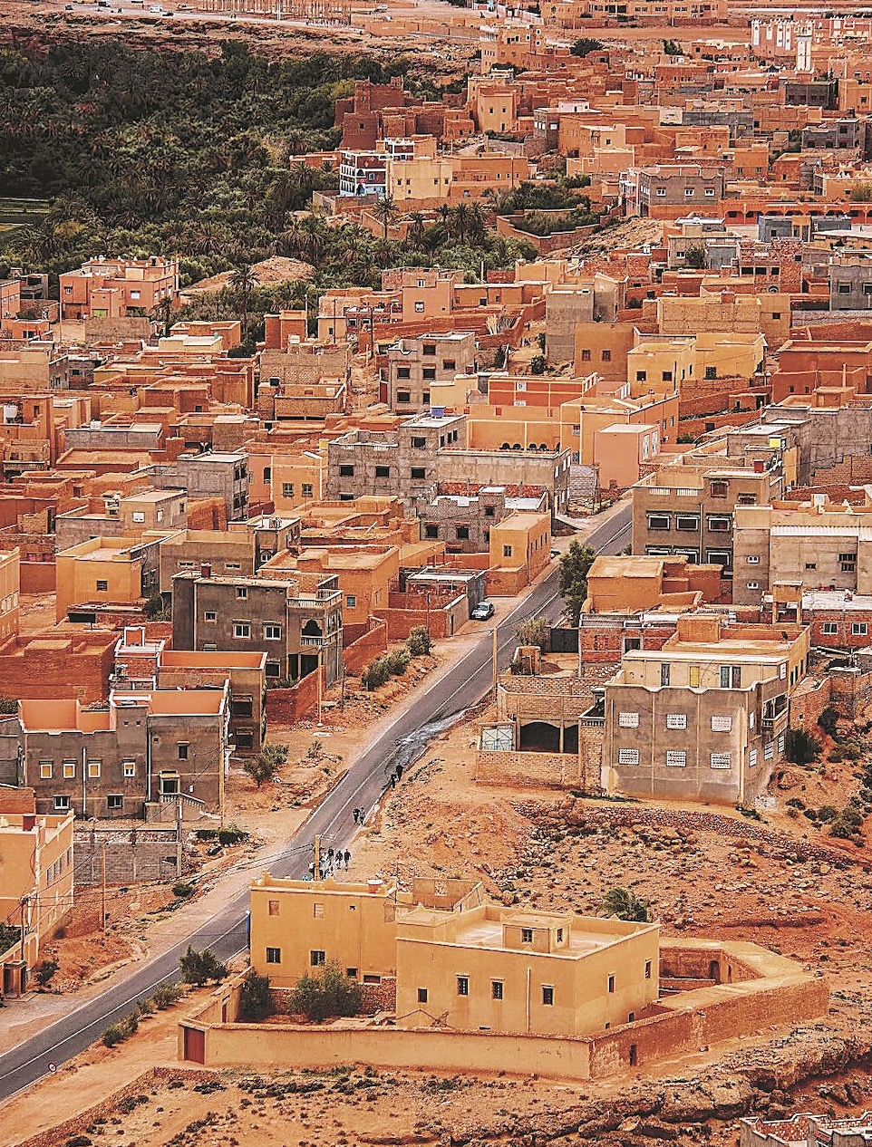 不止《卡薩布蘭卡》,很多電影都是在摩洛哥取景。前往沙漠途中經過的阿伊特本哈杜筑壘村和瓦爾扎扎特堪稱是摩洛哥的橫店。阿伊特本哈杜筑壘村于1987年被評為世界遺產,《阿拉伯的勞倫斯》《角斗士》《權力的游戲》等影視作品都曾在此拍攝。瓦爾扎扎特還有供游客參觀的電影城。當然,更吸引我的還是本地人的市井生活。在瓦爾扎扎特的酒店放好行李后,我走到城鎮中心閑逛,廣場中心圍了一圈看表演的當地人。街道不算寬闊,兩邊支起了攤位,賣甘蔗汁、烤棉花糖、炸爆米花,像極了國內縣城的春節景象。沒能在國內過年,竟然在異國他鄉收獲了相似的體驗。我買了一杯牛油果奶昔,伴著粉色的晚霞在天黑前回到酒店。