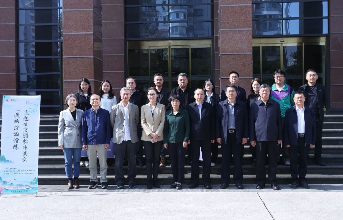 10月14日,“我的汾酒情緣”主題征文頒獎座談會在中國現代文學館舉行。 中國作家出版集團?有限公司副總經理宋向偉,《人民文學》副主編陳濤,山西省作家協會黨組成員、副主席張鳳鵑,汾酒集團黨委委員、副總經理梁建文等出席頒獎座談會,中國報告文學學會常務副會長梁鴻鷹,中國少數民族作家學會副會長石一寧,《文藝報》總編室副主任行超,北京電影學院副教授李嘯洋,中國作家網副總編輯張俊平、《人民文學》編輯梁豪等嘉賓與會?;顒佑芍袊骷揖W總編輯王楊主持。