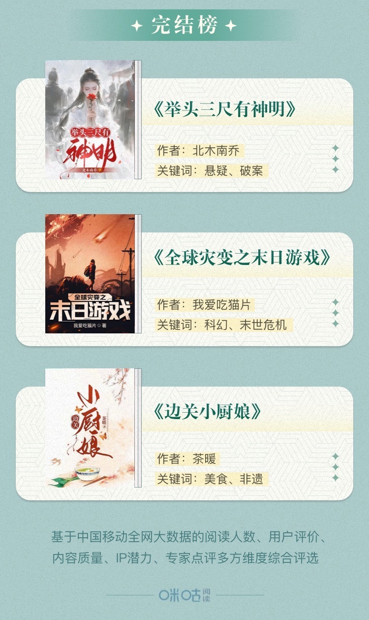 咪咕“悅讀好書榜” 第十期揭曉,現實關懷與類型突破作品成焦點