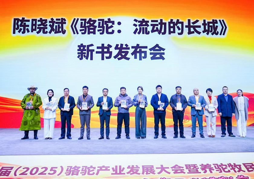 10月22日至24日,在甘肅省敦煌市舉辦的全國“第十屆(2025)駱駝產業發展大會”上,作家陳曉斌的新作《駱駝:流動的長城》正式發布。這部由敦煌文藝出版社出版發行的作品,全書三十萬字,是國內首部紀實性講述駱駝故事的著作,也是中國首部融合文學、歷史、科普維度的駱駝主題書籍。