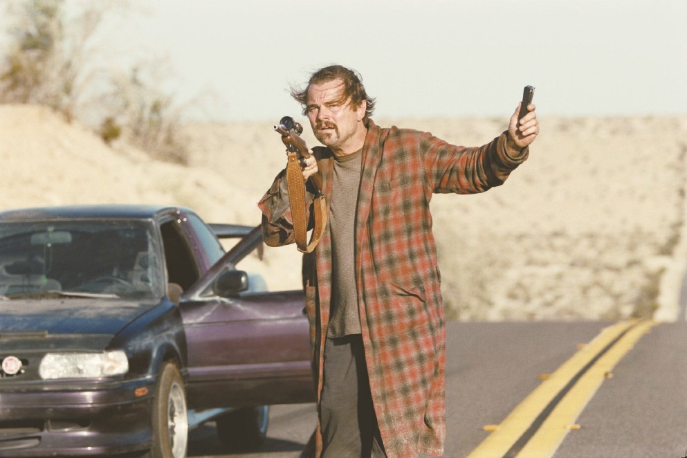 鮑勃仿佛一個活在舊時代殘影中的幽靈,藏匿于社會的邊緣,用毒品、酒精麻痹自己,試圖與那個狂熱而又最終失敗的過去切割。迪卡普里奧的表演精準地抓住了鮑勃的核心特質:“偏執”與“遺忘”。