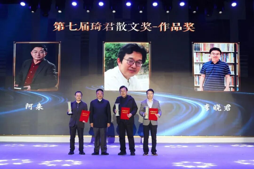 11月3日,“文心共赴 寓見甌?!薄谄邔苗⑽莫勵C獎典禮在溫州市甌海區舉行。作家阿來、馮杰、李曉君分別憑借《西高地行記》《鯉魚拐彎兒》《鄱陽帖》榮獲第七屆琦君散文獎·作品獎,溫籍作家李振南的作品《海鮮生猛:東海海錯筆記》榮獲第七屆琦君散文獎·特別獎。全國政協文化文史學習委員會副主任、中國作協副主席閻晶明,溫州市委常委、宣傳部部長王彩蓮,甌海區委書記劉云峰,《十月》主編季亞婭等有關領導和嘉賓出席了頒獎活動。