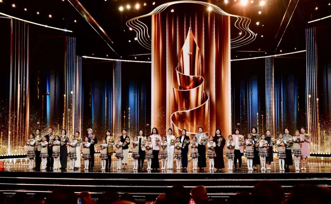 本次盛典將莊重典雅的文學頒獎典禮與氣氛熱烈、傳播力強的電視晚會和網絡平臺直播深度融合,精選兒童文學相關內容進行創意編排,以靈動活潑、隆重豐富的節目形態,生動展現兒童文學的獨特魅力,深情表達兒童文學作家對美好純真童年的溫暖呵護,引導廣大少年兒童在文學閱讀中收獲真善美,獲得健康成長的堅實力量。開場秀《造夢家》帶領觀眾闖入書本中的奇幻世界,兒歌連連唱《聽媽媽講那過去的事情》喚起全民童年記憶,創意音樂秀《陪我長大的朋友》重現黑貓警長、哪吒、孫悟空、雪孩子等經典角色,舞蹈《瓷影》展現中華文明的傳承創新,歌曲《用盡我的一切奔向你》《最好的未來》深情傳遞愛與希望的力量?,F場還播放了《清溪漫記:一堂特別的讀書會》視頻短片,生動記錄了兒童文學作家金波與小朋友們的交流互動;播放短片《全世界書迷的告白》,特別向兒童文學作家曹文軒致敬;播放以蔡皋、祁智、蔡崇達為主角的短片,以影像方式展現作家作品背后的感人故事。來自中國作協定點幫扶縣甘肅省臨潭縣的6名小朋友也來到盛典現場,與大家共同見證屬于兒童文學的閃爍星光。