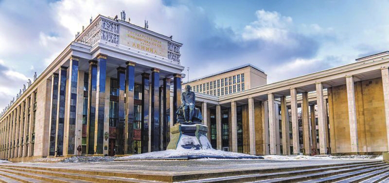 俄羅斯國立圖書館的前身為魯緬采夫博物館,1862年自圣彼得堡遷往莫斯科,入駐克里姆林宮西墻300米外的帕什科夫公館,同時獲準接收法定呈繳本,其藏書部門成為莫斯科第一家免費的公共圖書館。20世紀20年代中期,博物館改組,1925年定名列寧圖書館。20世紀30年代至50年代,列寧圖書館宏偉的主館建筑群在帕什科夫公館北側陸續建成。蘇聯時期,列寧圖書館是全聯盟的中心圖書館,主要通過繳送本制度,全面收集國內出版物,借助國際交換、采購、捐贈,有重點地入藏國外書刊資料。